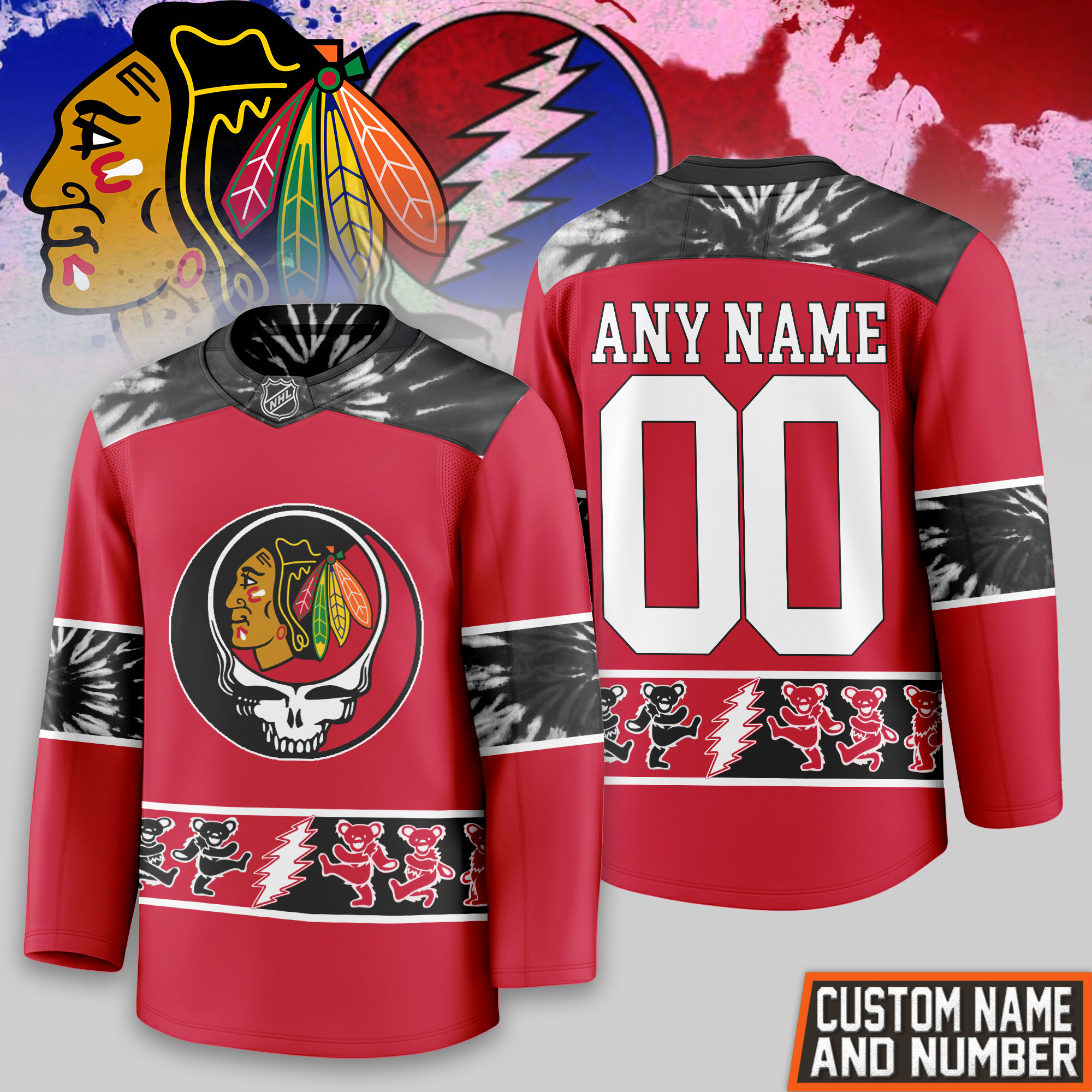 Chicago Blackhawks | Premium NHL Tie-Dye Skull Hockey Jersey