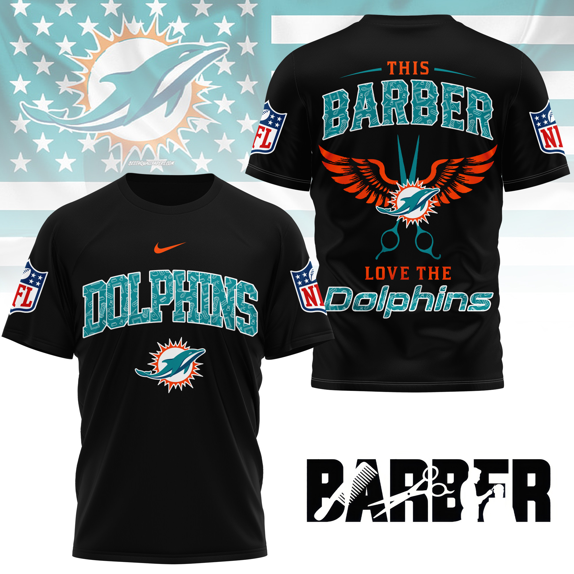 Miami Dolphins | Premium NFL Barber Fan 3D Shirt NY