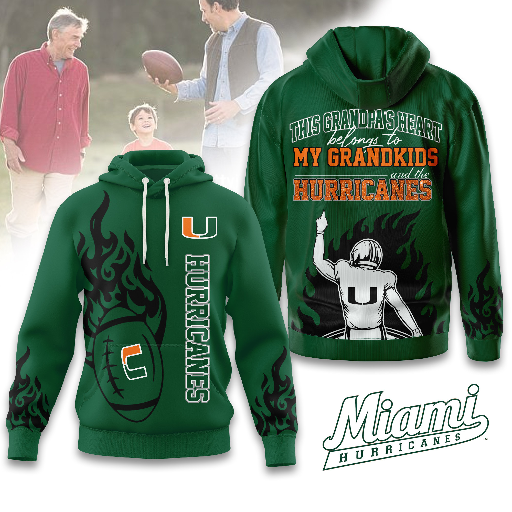Miami Hurricanes | Premium NCAA Football Grandpa Hoodie