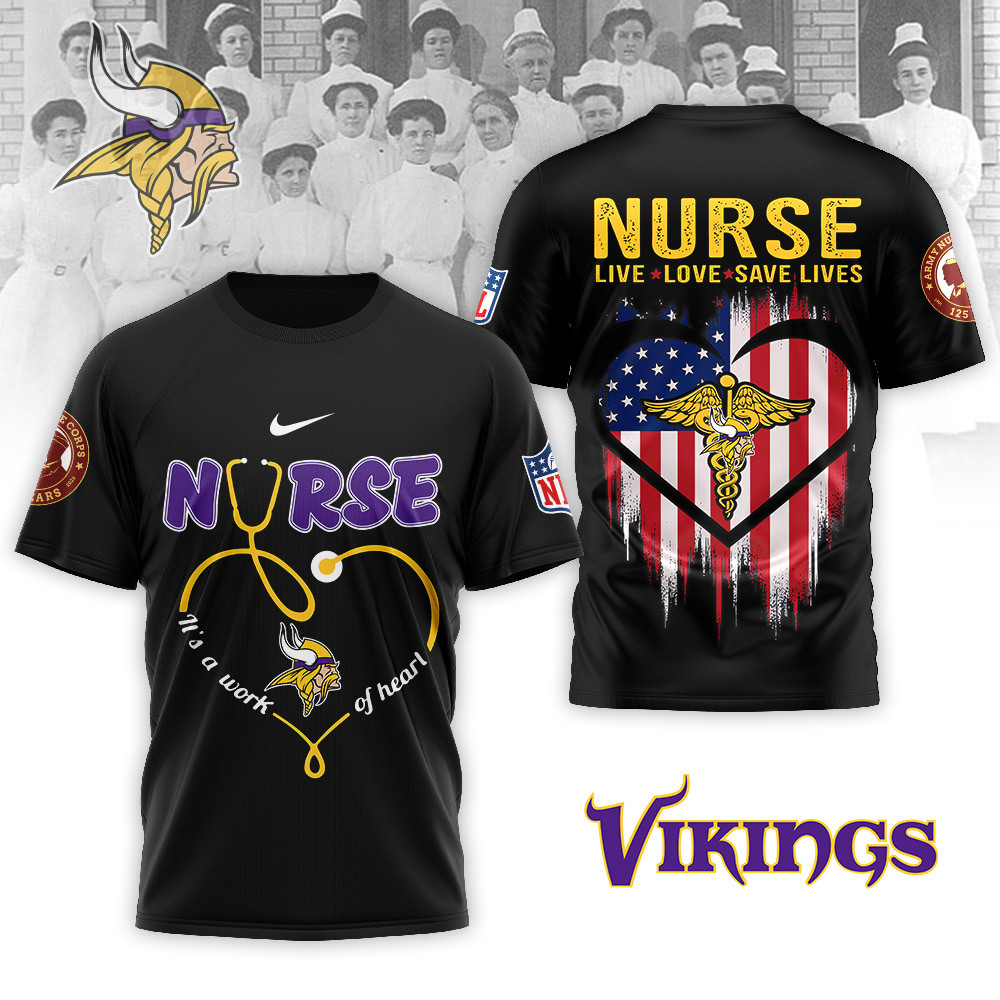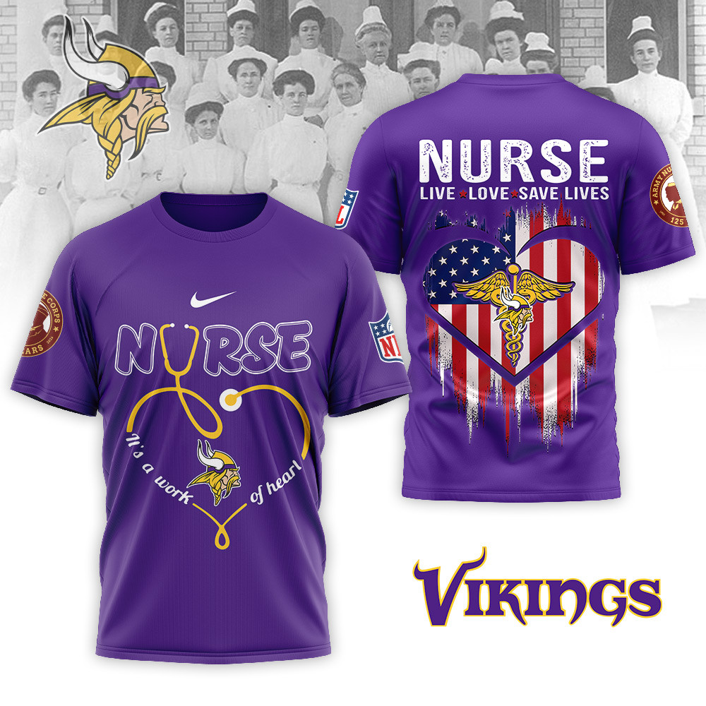 Minnesota Vikings | Premium NFL Army Nurse Corps 125th Anniversary 3D Shirt